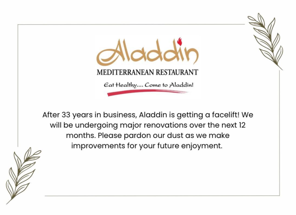 Give your parties, weddings, birthdays, meetings, special occasions, and events a personal touch with our customized menus or buffet-style servings. we cater on-premise at Aladdin or at the location of your choice.